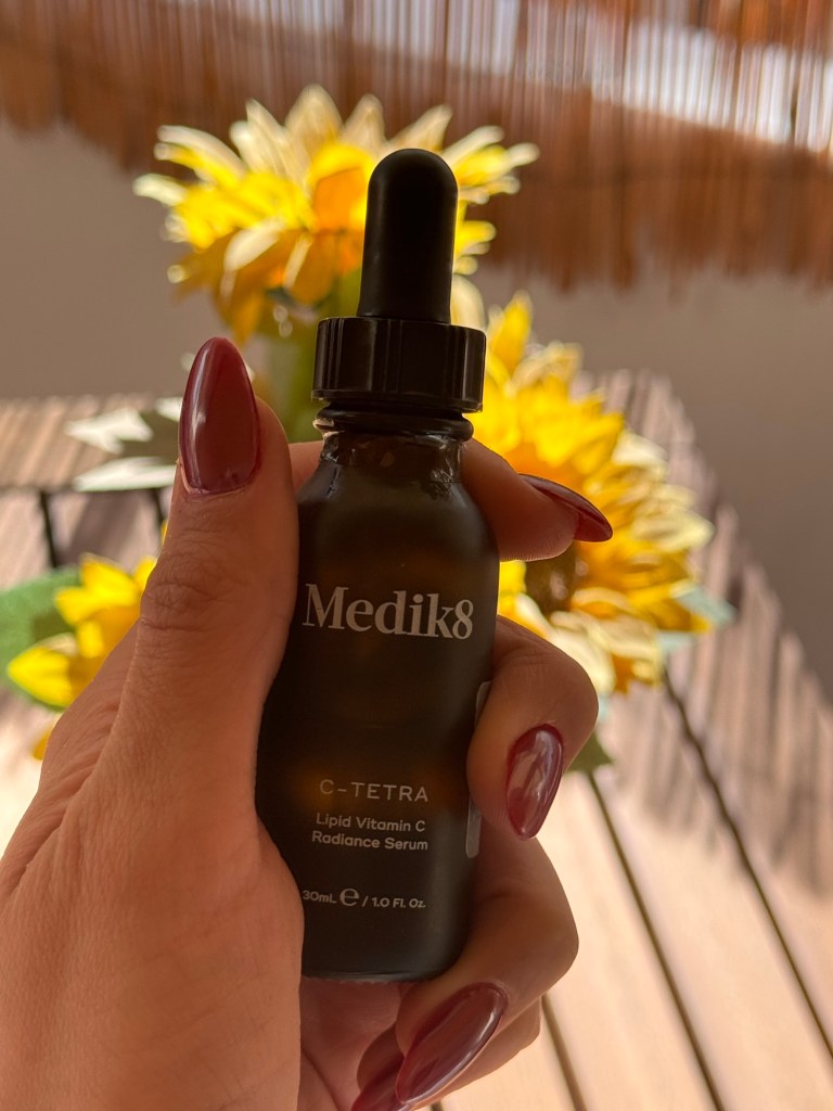 Next up is my secret weapon for youthful, glowing skin—MEDIK8 C-TETRA 7%. It’s a powerful Vitamin C serum that brightens and protects.