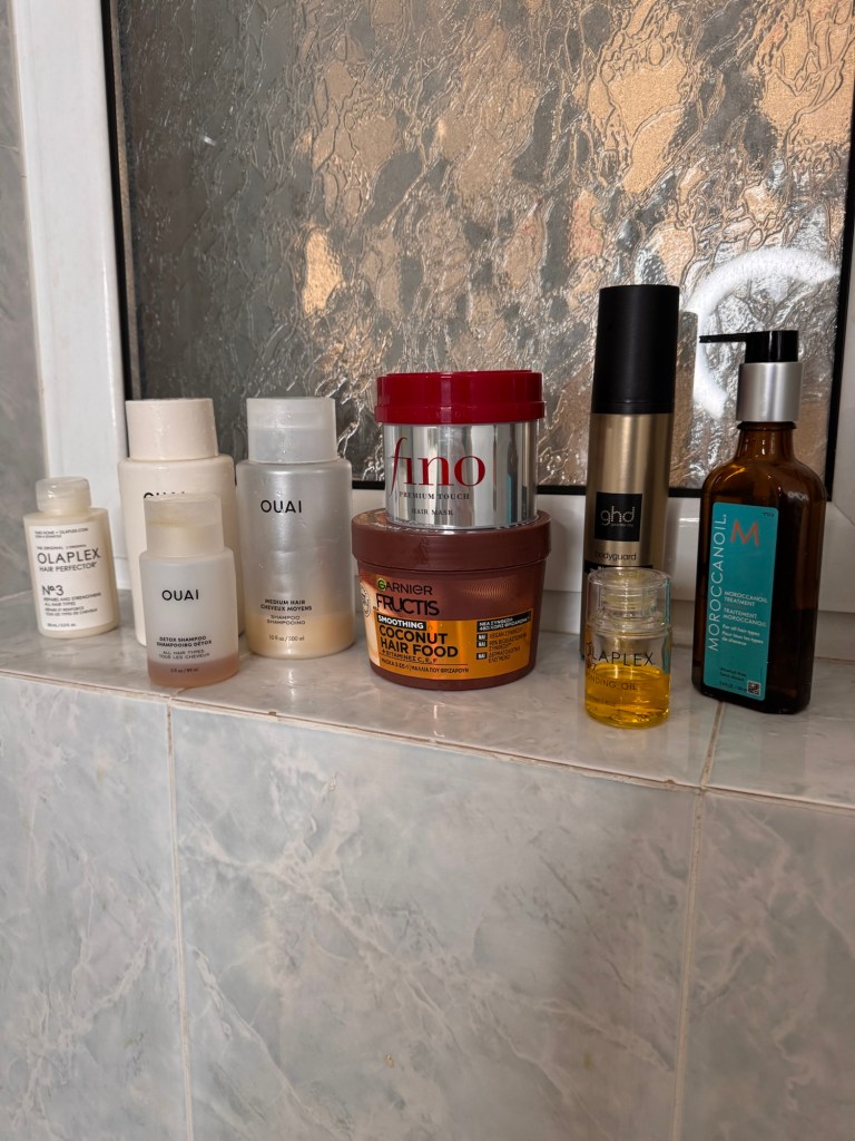 - Garnier Hair Food 3-in-1 Hair Treatment Mask & OUAI Medium Hair Conditioner: On non-mask days, I alternate between these two. Garnier’s Hair Food is lightweight yet hydrating, while OUAI’s conditioner provides the perfect amount of slip for easy detangling.