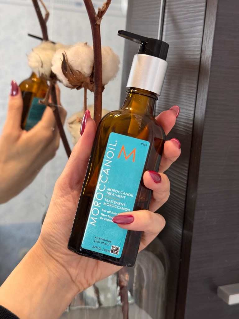 - Moroccanoil Treatment: I apply a small amount to the ends of my hair to keep them nourished and frizz-free. This lightweight oil is rich in argan oil, giving my hair a silky texture and radiant shine.