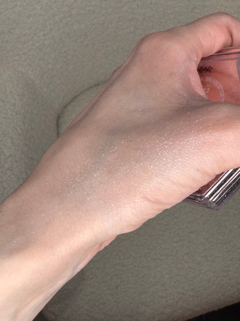 The shade How Many Carats?! is a pure platinum shimmer that works beautifully on all skin tones. Whether you’re fair, deep, or somewhere in between, this highlighter melts seamlessly into your complexion, adding an icy, dewy radiance without looking chalky or glittery.